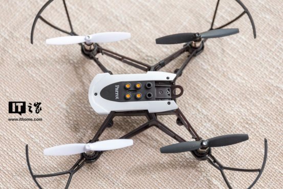 为了确保大家能够在飞行的时候认清楚无人机的方位,Parrot Mambo无人机前面两个螺旋桨片为白色,后面为黑色。