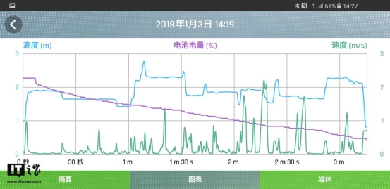 当然Parrot Mambo无人机最大的不足还是在于续航时间,尽管官方说明这款无人机的续航时间能够达到8分钟,不过经过IT之家的测试,大约飞行5分钟至5分30秒之后APP就提示电量不足,而实际使用过程中,无人机的电量在运行的时候呈现滑坡式下降,当然这也和锂电池的容量有很大的关系。