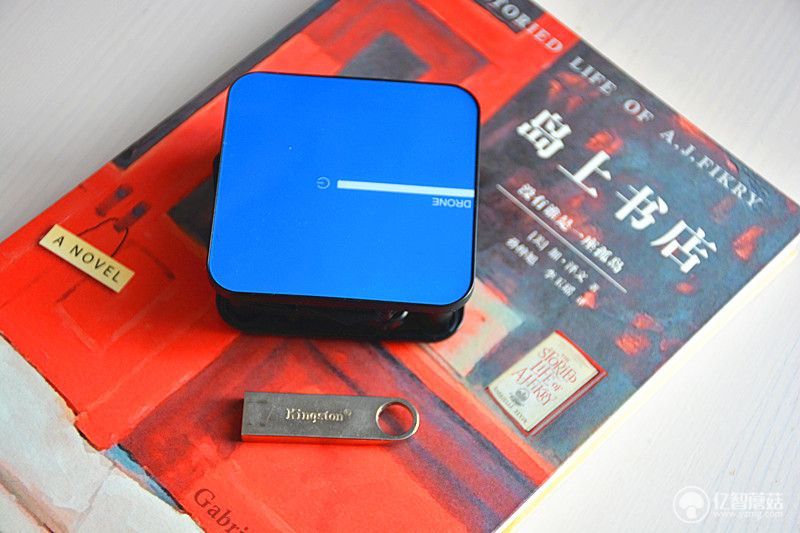 山猫无人机体积小,放在掌心里也不觉得大。正方形绿色亚克力面板比较吸引人,ABS材料在保证机身强度的情况下,降低了生产成本,在中心部位有一个电源电源开关。白条的末端指示为无人机的前端,便于操作。