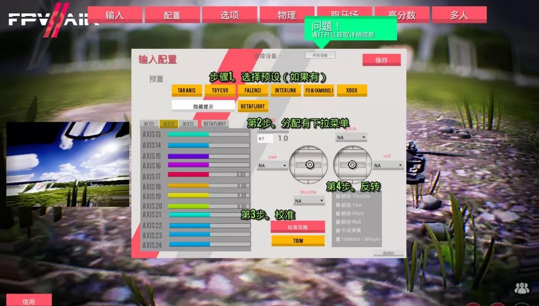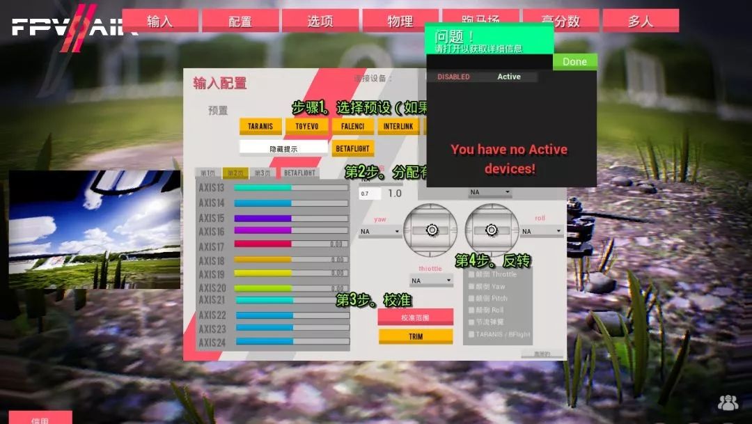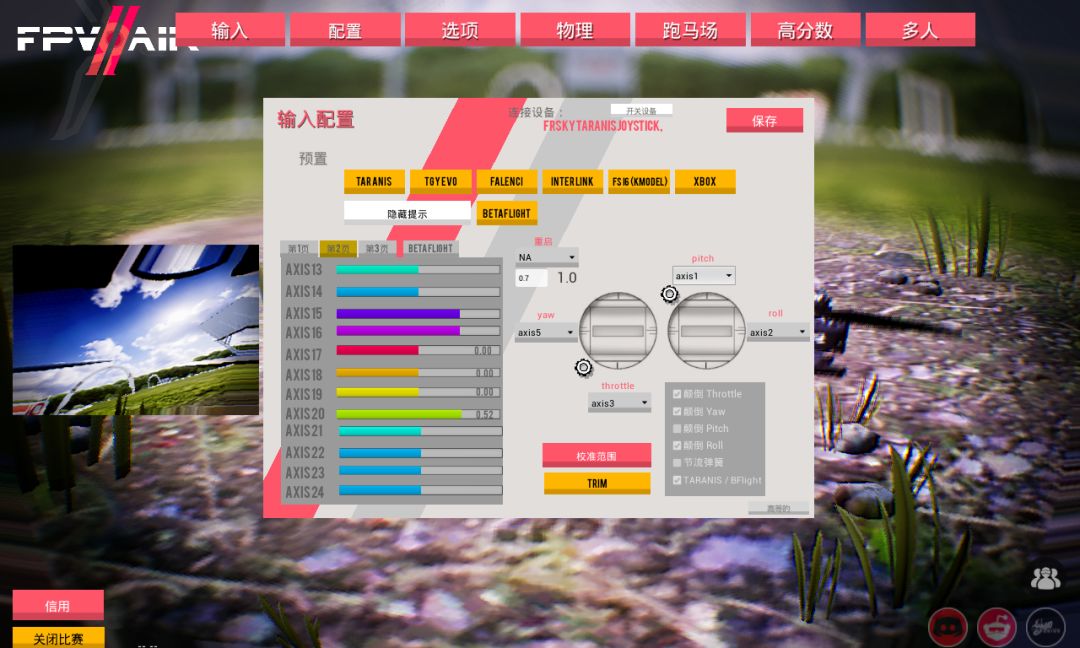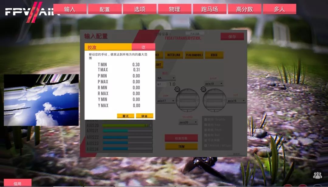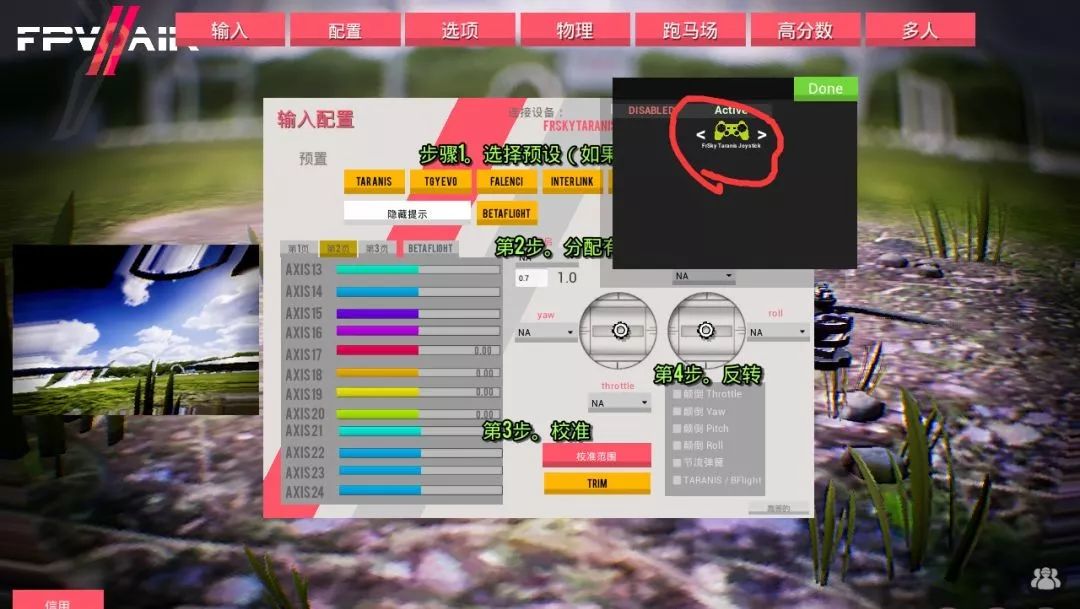 摇动摇杆,确认一下自己的摇杆是否和屏幕显示一致,如果有反向啥的可以点击输入界面右下角灰色区域的行程反向,来使得摇杆和屏幕显示一致。