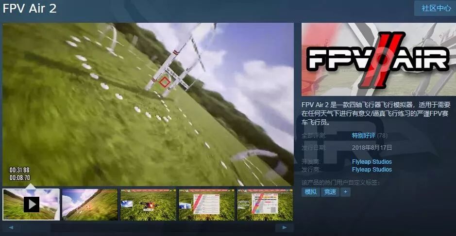 之前尝试过liftoff,hotprop,DCL和其他一些模拟器,总感觉飞起来很奇怪,FPV Air2 算是非常接近真机手感的一款模拟器,价格也很合适,Steam平台售价22元。当然也有别的更好的模拟器,不过我感觉还是这个比较适合推广用,价格也相当亲民了,22恐怕也就买一副桨的价钱了。