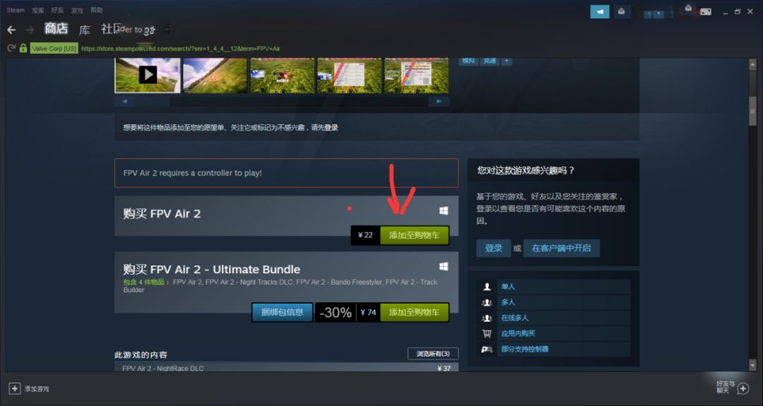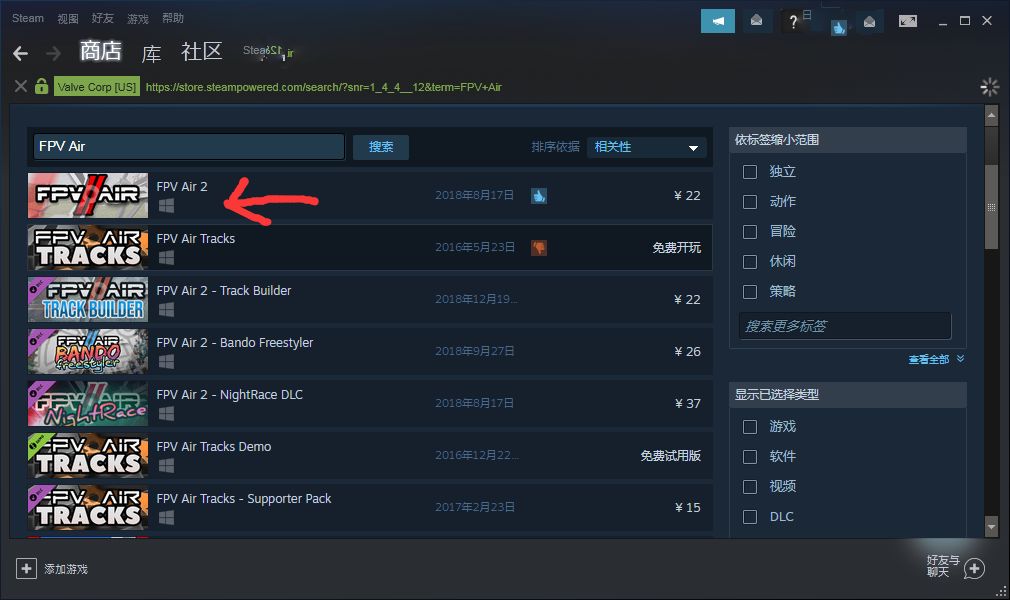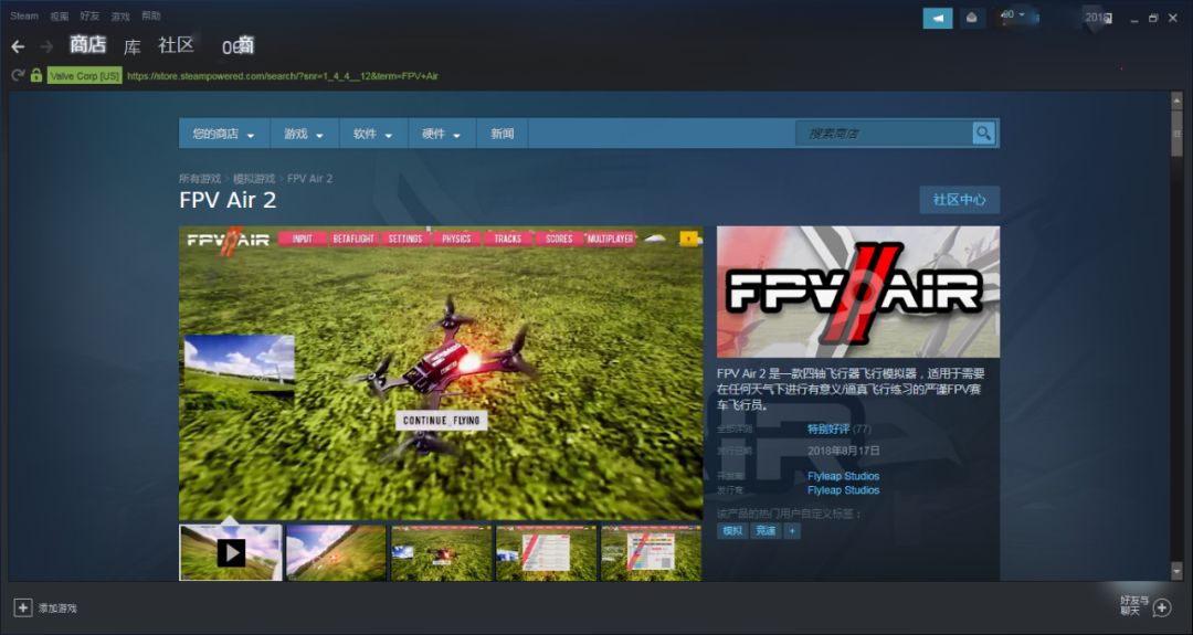 FPV Air2 是在Steam游戏平台上面发布的,安装这个模拟器需要先安装Steam游戏平台,如何安装Steam大家可以看另外一篇安装教程。