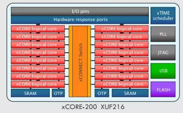 xCORE多核微控制器拥有数量在8到32个之间的、频率高达500MHz 的32位RISC内核。xCORE器件也带有Hardware Response I/O接口,它们可提供硬件实时I/O性能,同时伴随很低的延迟。多核解决方案支持完全独立地执行系统控制与通信任务,不产生任何实时操作系统(RTOS)开销。xCORE微控制器的硬件实时性能使得客户能够实现精确的控制算法,同时在系统内无抖动。