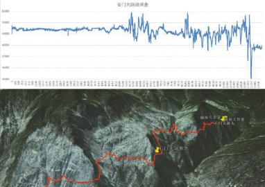 2、“石门关露头”指石门关一块出露的岩石,磁性强,指南针会偏转。“分界点”则指磁场开始剧烈变化的地点,从该点位朝石门关走的过程中磁场就开始剧烈变化。