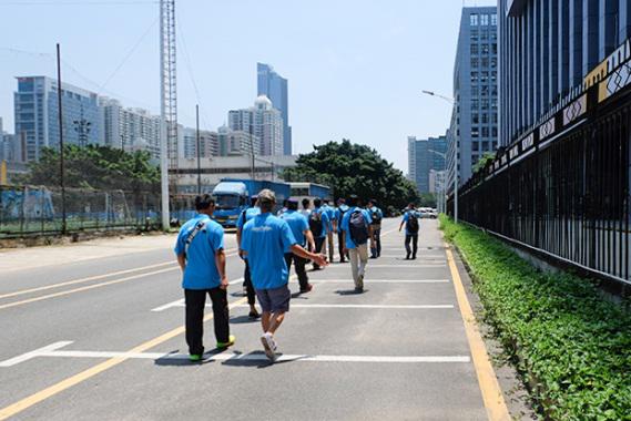 学员们在理论考试结束后,也对考试实践场地进行了解。尽管只能在场外考察,可他们都满足了,这“知己知彼,百战不殆”的战前的态度,实在让小编感动。