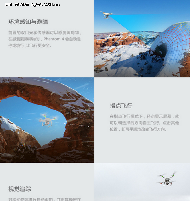 转载 2016-05-22 00:53 来源: it168大疆精灵PHANTOM 4加入了障碍智能监测、智能返航、自动跟拍前方物体等多项先进功能,飞行动力与拍摄性能方面都相当出色。