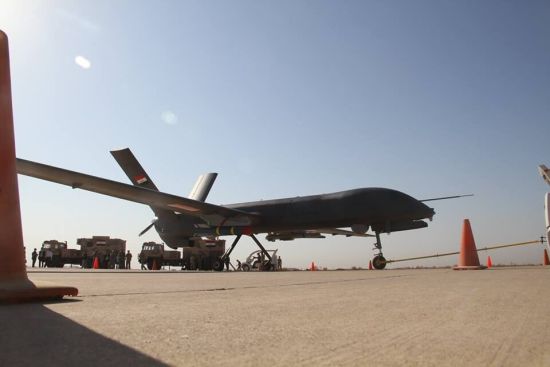 伊拉克空军装备的“彩虹4”无人机,图中这架无人机右侧机翼下携带一枚AR-1导弹,左侧则是50公斤激光制导炸弹
