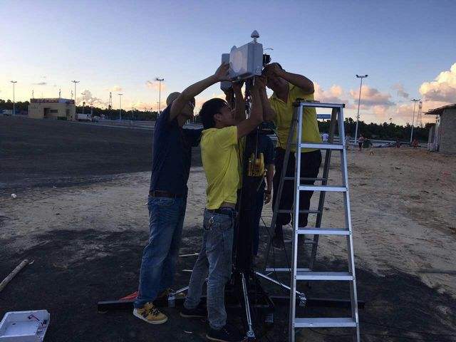 ↑海南移动的工程队在长征七号发射现场紧急安装应急速配站。