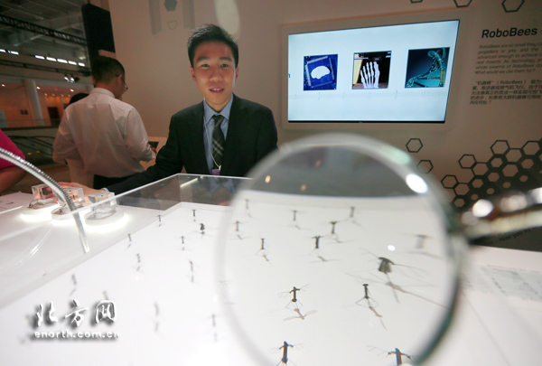 这款无人机由于采用仿生扑翼飞行模式,体积十分迷你,到底有多小?前沿新闻记者在该展区看到,这款无人机就像一只大蚊子,如果想看清楚构造的话还需要借用放大镜才能观看。陈宇峰说:“最小的无人机只有80毫克,大概30个这样的无人机才刚刚一分钱的重量。”