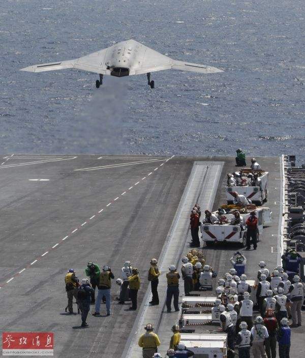 图为2013年7月美军一架X-47B无人机在“乔治·H·W·布什”号航空母舰上起飞。