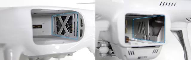 内部上壁。精灵4有一个开口,应该是GPS模块镶嵌在这里。精灵3则显得有些复杂。