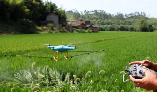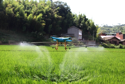 今年以来,重庆市永川区首次在临江、大安、何埂等镇街进行水稻病虫害专业化统防统治10000亩,涉及农业专业合作社、种粮大户等10户。无人植保飞机是结合了当前许多高科技成果所设计出来的专业农用飞行器,采用充电电池驱动,遥控器操作飞行,作业中可实现自由升降、悬停、倒退等功能,一次可携带8升高浓度药水,完成15-20亩水稻施药,可广泛用于农作物、林木等的农药喷洒作业,每分钟就能完成一亩农作物的施药,不仅效率高,而且成本低,效果好。