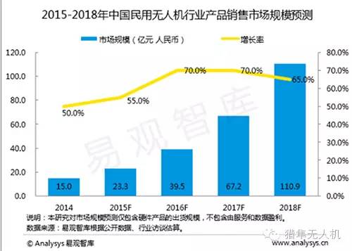 转载 2016-07-21 11:51 山鹰 来源:猎隼无人机2011年,以大疆创新为代表的中国消费级民用无人机企业,依靠多旋翼无人机迅速崛起。在航拍、物流领域,多旋翼无人机被广泛应用,顺丰、阿里巴巴、圆通等测试无人机送货;《爸爸去哪儿》、《智取威虎山》航拍镜头,歌手用无人机求婚事件;民用无人机领域投资案例频发,都让民用无人机成为近几年最受关注的领域之一。相比消费级无人机市场的红海,国内专业级无人机市场正呈爆发性增长,预计2018年,市场规模将达到 110.9亿元人民币。