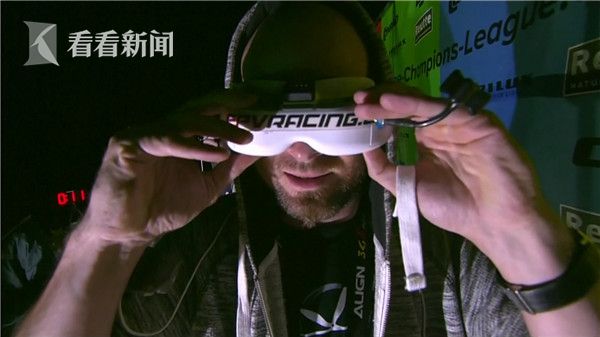 参赛者戴着智能眼镜,借助无人机上的摄像头,他们纷纷变身"飞人",争先以最快的速度穿越障碍。竞相角逐中,也有人不幸"坠机",败下阵来。