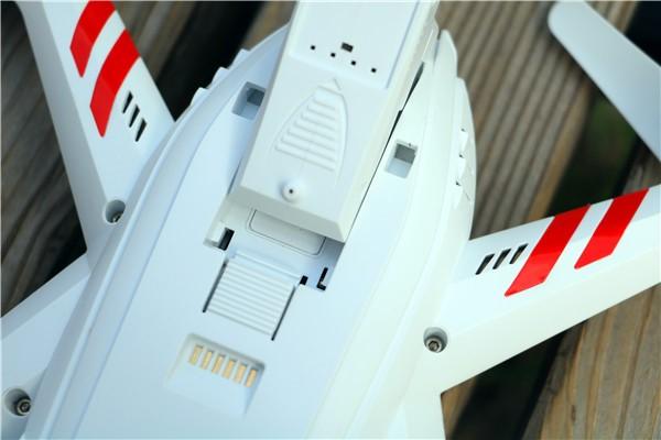 先来简单说一下遥控器,遥控器作为无人机的控制部分,是至关重要的。大黄蜂的控制器是按照专业无人机遥控器来设计,掌握部分采用橡胶材质,可以稳固双手,两个摇杆顶部带有刺尖,这样可以更好的掌控操作精度。在摇杆下方有两个快捷键,左侧为一键返航键,可以在飞行过程中一键傻瓜式“召回”;右侧为一键起降键,初学者可以进行尝试,一键起飞,飞机可以飞行至五米高度悬停。这样极大方便新手操作,可以做到快速上手。摇杆中间带有GPS信号,遥控器电量指示灯,操控者随时可以知晓飞行情况,在飞行过程中,操纵灵敏,手感也很不错。
