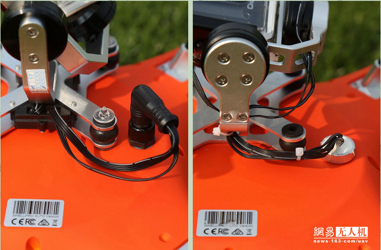 1、云台线缆与机身的连接现在通过的是防水插头,而不是原来那种直接用胶固定的简单粗暴的方式;