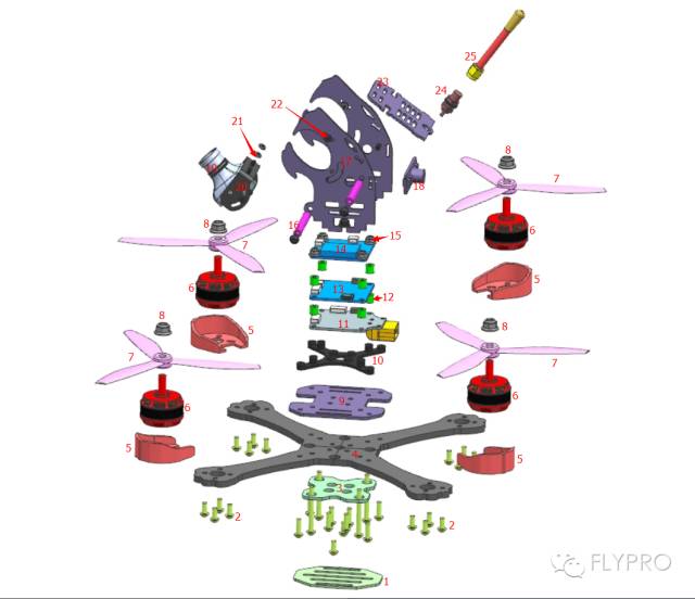 XJaguar豹力竞速穿越机组装极其简单,先看看安装的说明图,极其简洁: