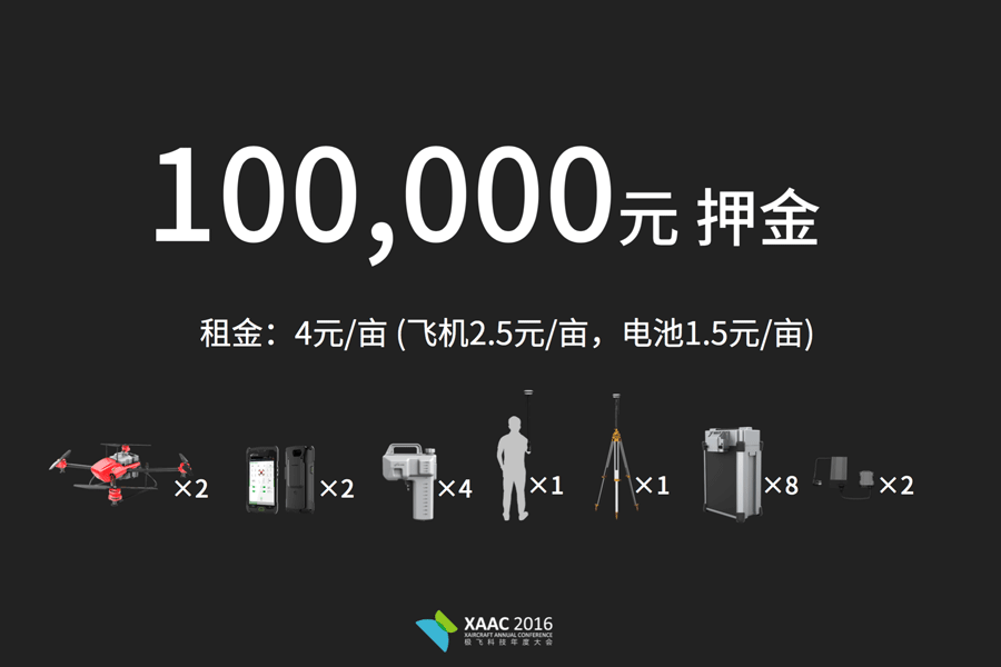 只要缴纳 10 万元押金,就可以从极飞或合作伙伴处租用 2 台 P20 无人机、2 个智能手持终端、4 个装药系统、2 块智能电池,每亩地的租金4 元,其中飞机 2.5 元一亩,电池成本 1.5 元一亩。