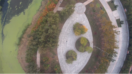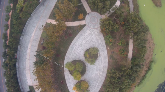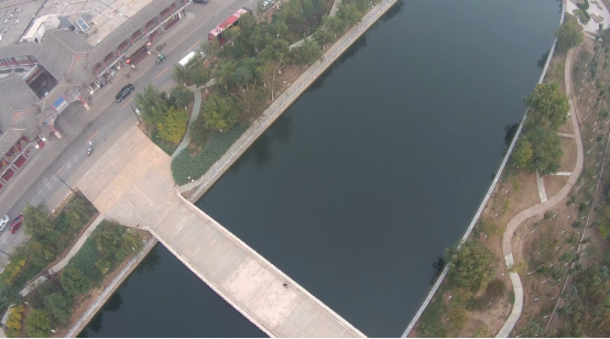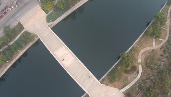 一键环绕模式下无人机飞行平稳,画面无任何抖动,完美呈现御河桥环形区域内的场景;