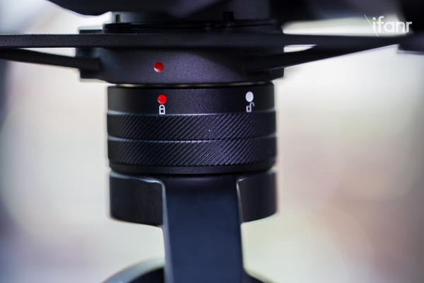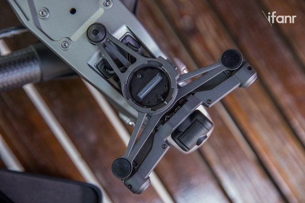 咋一看,Inspire 2 最大的变化就是哑光灰的铝合金外壳、前置双目摄像头及 FPV 相机模块,粗壮的电机、更结实的桨叶锁止机构还有全新设计的电池安装方式。除此之外,Inspire 2 的脚架在变得更加纤细简洁之余,强度似乎也有所提高。