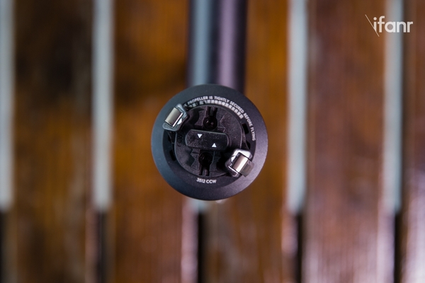 仔细观察机身上方,我们又可以发现另外的亮点。由于 Inspire 2 改用了铝合金外壳,为了防止阻碍 GPS 定位信号,机顶 GPS 部位开了一个圆形的洞,与铝合金外壳颜色一致的塑料覆盖 GPS 天线取而代之,所以 Inspire 2 定位精度应该不会因外壳材质的变化受到任何影响。