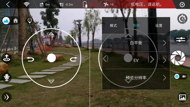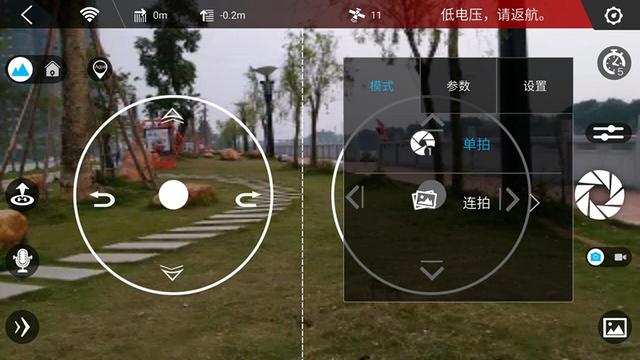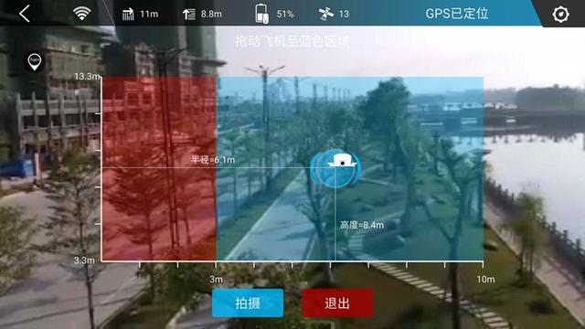 拍照和视频拍摄可以进行点击切换,默认是1080P高清拍摄,室外操控的话定位必须达到7颗星以上,通过左上角可以选择室外或者室内使用,室内的话定位方面也蛮迅速,基本可以完全控制,30米的高度来控制的话比较稳定点,官方表示可以抗四级风速,过于风大还是选择别飞的好,担心误差会对飞行当前位置判断失误。