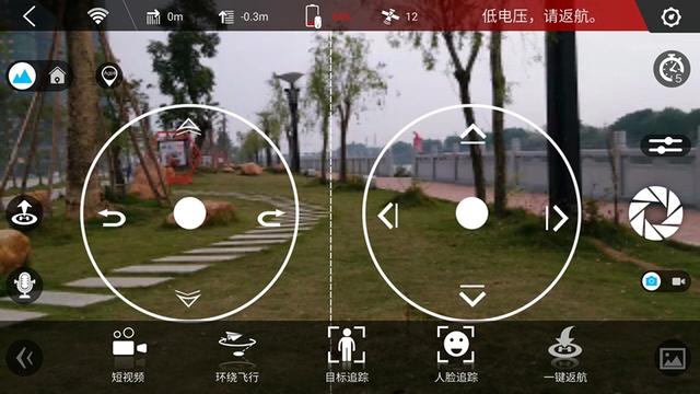 在左下角的箭形图标,收纳了大部分功能的操作,包括短视频、环绕飞行、目标追踪、人脸追踪以及一键返航,每一项功能点进去几乎都有分别的提示来告知你此项功能的操作方法,这点给新手带来蛮方便的直观方式,官方这点还是考虑得蛮用心。
