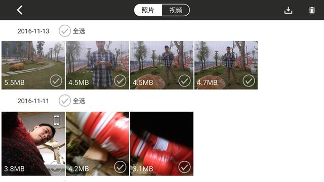 内置了16G存储空间,基本可以满足我们日常拍照拍视频的存储要求,照片视频都可以直接通过下载的方式直接下载到手机上,可以方便我们查看以及分享到社交平台。