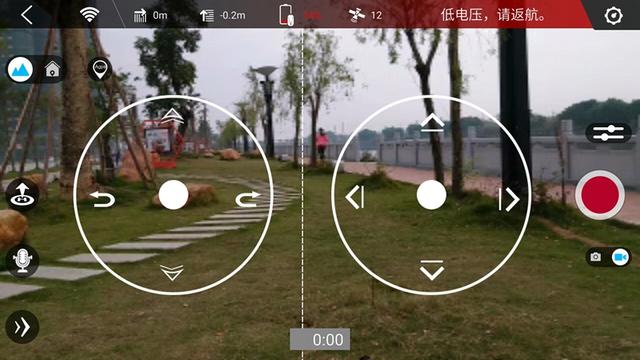 点击起飞和降落都是在一个功能键上,在第一次玩无人机选择的场景当然还是以空旷为主,毕竟刚上手操作起来并不简单,默认的上下左右方向控制为体感,这个感觉非常不适合新手操作,容易因为摆动手机而促使无人机乱串,为了方便我还是选择了摇杆控制,这样比较轻易控制。还有一项功能就是可以用语音方式进行起飞,包括降落也可以通过语音的方式,在功能的覆盖上还是比较的,可玩性很高。
