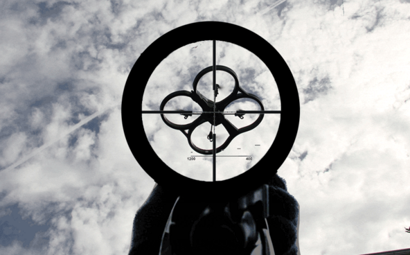 低空飞行的无人机实际上是非常脆弱的。任何接触到其螺旋桨或机身被触碰到的物体,都可能导致无人机坠落和失控。因此,你可以用不具备杀伤力的散弹枪进行吓阻,最好安装彩弹,偏离目标发射,提醒无人机操控者,让其尽快离开。