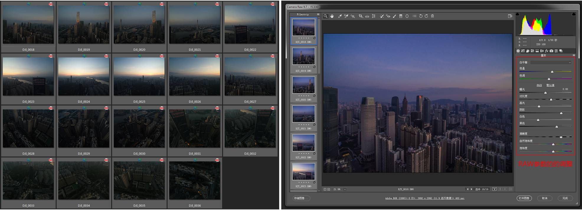 当时的他就想:日出时分的全景图又是什么样子呢?于是,第二天早上5点多他就赶到了拍摄现场,航拍镜头里,广州在蓝调下渐渐醒来,也就有了《城市星梦》晨光微露的梦幻全景。