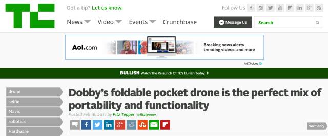 其中,美国顶级科技媒体TechCrunch日前对红遍Youtube和Facebook的DOBBY进行了深度报道,并以『便携性与功能性的完美结合』来评价DOBBY: