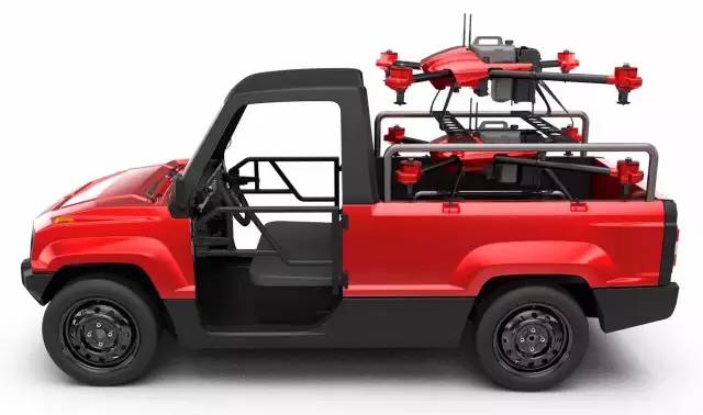 大型的卡车不适合在狭窄的田埂上穿梭,因此,在过去的植保过程中,大卡车只能停在大路旁,服务队员常常需要把无人机扛到更窄的道路上。用这款电动汽车来取代原有的卡车,能够节省搬抬的人力。