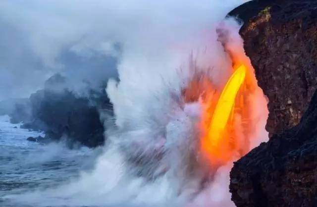 另一次是它位于海边的一段悬崖倾塌,岩浆从悬崖直泻入大海,仿佛打开了地狱的“火龙头”。