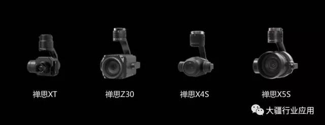 经纬M200全系列飞机支持四款云台相机,分别是禅思X4S云台相机、禅思X5S云台相机、禅思XT热成像相机和禅思Z30远摄变焦云台相机。