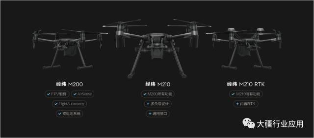 经纬M200系列专为行业用户设计, 经纬M200系列能解锁行业无人机的全部潜能。大疆的创新设计使得M200系列兼具功能强大和坚固双重品质,成为设备巡检、紧急救援等行业的首选工具。本次发布的为三个机型,分别是经纬M200,经纬M210和经纬M210 RTK。