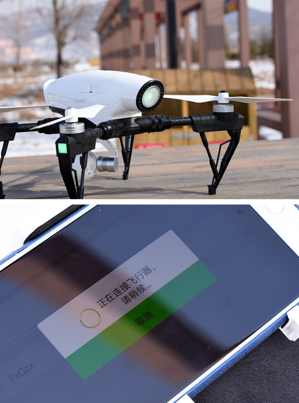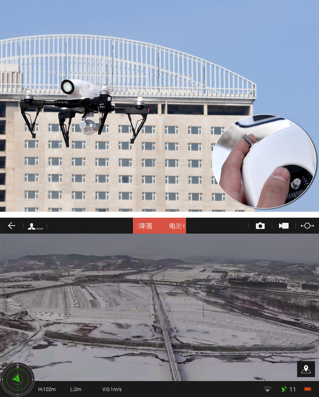 当飞行器尾部变为绿色、即为8颗+卫星,此时便可以安全飞行。但是千万不要在尾部没有亮绿灯的情况下起飞,否则炸机的几率还是蛮高的,为毛这样说,因为我就这么干了一次,还好当时刚下过很厚的雪,下面又是冰面,飞机在盘旋之很低的时候才坠落,所幸没有造成损坏。值得一提的是现在的APP还不够成熟,连接视频时候还是不太方便,每次需要删除之前的链接,再重新连接才能快速的连接,要不几乎没有连接上的可能。