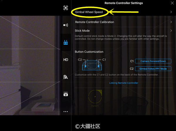 第三:降低刹车灵敏度。降低刹车灵敏度会减缓刹车时的顿挫反应,镜头变化也更加平缓。[注] 降低刹车灵敏度同时也增加的刹车的行程,因此控制无人机时要注意保留安全刹车距离。