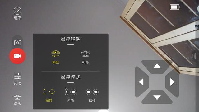 滑动屏幕实现对镜头的调整,水平滑动让会让飞机原地宣传,上下滑动可以调整镜头俯仰角度,小技巧是滑动后不放手镜头就会一直按该方向调整,适合俯拍等大幅调整镜头的场景。