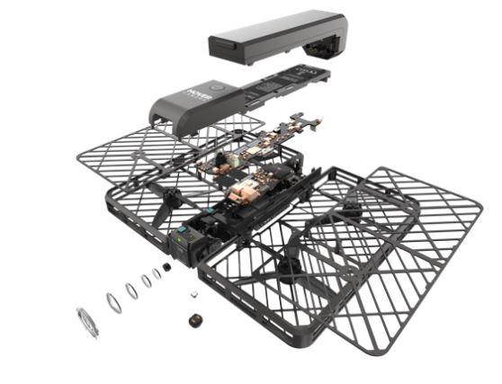 Hover Camera 的设计中一定参照了昆虫的仿生学原理,所有的重要元器件都布局在类似躯干的机身里,参与该机设计的工程师曾在知乎上透露经过反复几次优化之后才实现了现在的紧凑布局,不仅主板面积在同类产品中较小,甚至还可靠桨叶旋转的气流给机身散热。