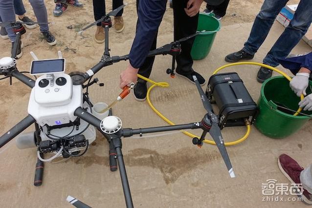 自动灌药机首次亮相,以配合无人机药箱加药程序。此外,为方便飞手和村户检查喷洒效果,大疆在DJI-MG手机客户端提供雾滴分析测试,通过手机摄像头或者雾滴分析仪记录水敏纸情况,可检测到每平方厘米上的液滴附着情况。