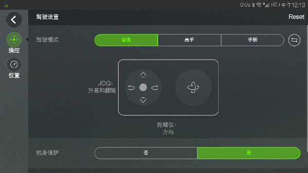 Parrot Mambo提供了三种驾驶模式:普通、高手、手柄,说来惭愧,我目前就会手柄模式,其余两个模式都是乱飞一通,控制不好方向,准确来说我都没弄明白方向在哪。对于初学者来说,手柄模式是最容易操作的,基本没有学习成本,上下翻转、前后左右分工明确。