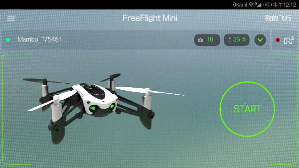 连接方式也很简单,开启无人机,打开蓝牙,再打开FreeFlight Mini应用就会直接搜索无人机,搜索成功后选择机身就可以进入操控界面。