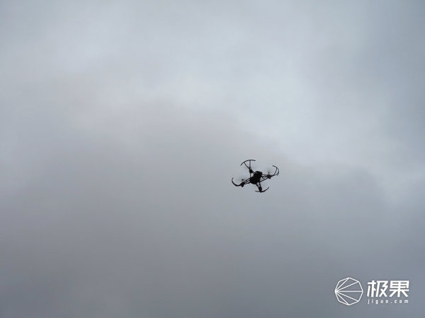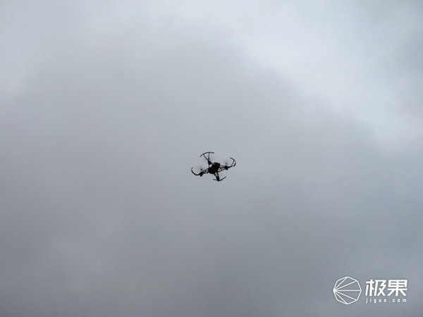 测飞那天是下雨天,风有点大,Parrot Mambo明显有点吃力,飞行过程中很容易摇晃,悬停时候直接给风吹了半米远,位置飘忽不定。这种情况下直线高速飞行不太理想,很容易偏离原先目标,可以看出这类小型无人机受天气影响比较明显。