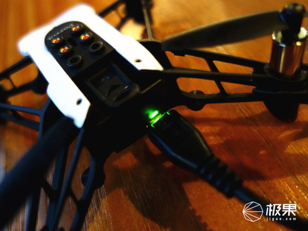 关于续航问题,基本达不到官方所说的最长距离,6分钟上下,在飞行过程中电量低会自动报警并且自动下降,我还发现升降是耗电最多的地方。6分钟的可玩时间,对我来说确实很短,飞着飞着就没了;关键是Parrot给Mambo只支持机身直接充电,反正充电期间你就别想玩了。充电完成后会有绿灯提示,续航也是我不满意的地方。