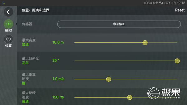 直接用手机蓝牙连接操作有效距离仅为20米,使用Parrot Flypad手柄可扩增至60米,不过Parrot Flypad手柄需要另外购买,278元的价格还能接受,不过我是不会购买。Parrot Mambo最高飞行速度可达30公里/小时,这就意味着最高时速下,只需3秒,它就能飞出你的有效距离连接距离,貌似速度快没什么用,一飞就得去重新连接。高度、垂直速度、旋转速度等都可以进行设置,这个还是不错的。