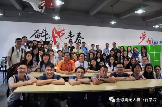香港永光书院领导师生和余总在全球鹰无人机合影留念