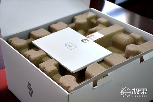 打开箱体后首先可以看到的是P3 SE的资料包,箱体内部采用纸质模具来保护内部的无人机。这个模具从做工来看非常粗糙,给人一种很强的劣质感。虽然是入门级别的机器,但还是感觉这个有很大的改进空间。
