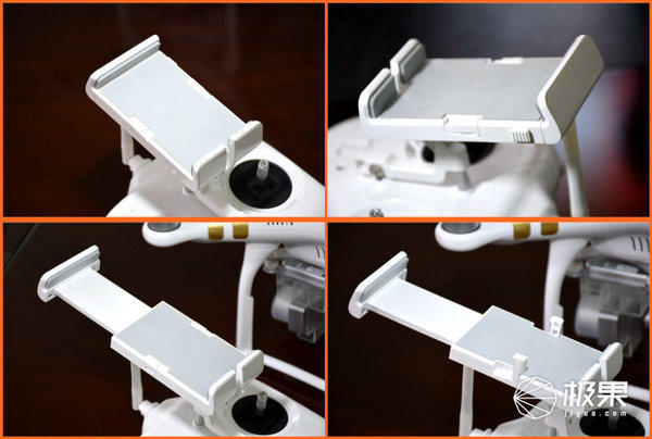 遥控器的开关为推拉式设计,支架采用了平板手机通用支架。