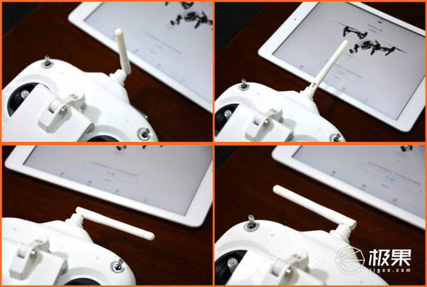 遥控器的天线位于顶部中间位置,采用了单根的设计,同时支持左右两侧180°旋转以及上侧的90°旋转。